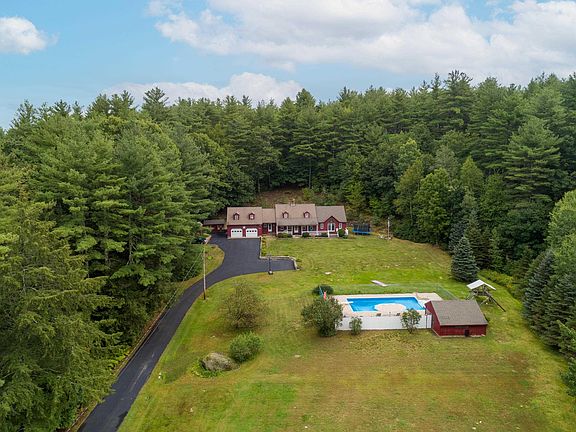 Incredible opportunity to own this beautiful 3 bedroom cape on 2.5 acres in Weare. The additional living space on the first floor with cathedral ceiling, gas stove and french doors overlooking the large landscaped yard and in-ground pool and pool house. The dining room has a wood stove and living room has this beautiful fireplace. The second floor has 3 bedrooms with extra room which could be used as a bedroom or office. Large basement provides for plenty of storage, workshop, etc. The pictures do not do this home justice. Come see the beauty for yourself. This home is close to Pat's Peak Ski Area and Horace Lake (Chase Park); and a short distance to Concord. This home is close to all sorts of recreation (boating, hiking, skiing, snowmobiling, hunting and more)!