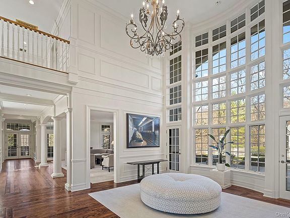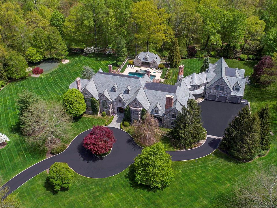 Behind the gates of one of Bedford's most exclusive enclaves, rises this breathtaking English Manor estate designed by renowned architect Tasos Kokoris. This architectural gem offers unparalleled privacy, luxurious resort-style amenities, and a coveted location - just under an hour from Manhattan. Set on over five acres of flawlessly landscaped grounds, the home is a statement of timeless sophistication and superior craftsmanship. Inside, soaring 10 to 12-foot ceilings, intricate custom millwork, and designer finishes create a sense of grandeur. A new Deane kitchen anchors the heart of the home, while thoughtful additions such as an elevator, full gym, sauna, wine cellar, theater, and guest suite enhance its lifestyle offerings. A cherry-paneled library hides a dramatic stairway leading to a magnificent primary suite, complete with dual spa bathrooms, expansive walk-in closets, and a serene, glass-wrapped sitting room. Perfectly tailored for both large-scale entertaining and quiet moments, the outdoor living spaces feature a heated 40x20 PebbleTec saltwater pool, 14-person infinity-edge spa, and a luxurious pool cabana with a summer kitchen and full amenities. Enjoy a three-season screened porch, limestone terrace, lush gardens, and even your own private golf practice area. A showroom-style garage for nine cars complements the main residence's attached garage and is perfectly tailored for a luxury car collection or other uses such as an indoor sport court. Easy access to award-winning schools, top country clubs, fine dining, shopping, and Westchester County Airport. This is the pinnacle of luxury living in Bedford.