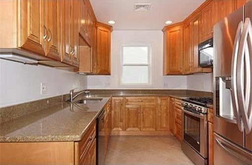 Amazing renovation! Beautiful 3 bedroom, 2 bath unit located on the second floor of a wonderful 2 family home in Watertown. Modern updates include a gorgeous kitchen with solid wood cabinets, granite counters and stainless steel appliances. Open concept living room/dining room, energy efficient windows, beautiful hardwood and tiled floors, walk-in-closet, central ac & heat. Washer/dryer and private storage available in basement. Great patio and back yard for entertaining guests or just relaxing. Lead paint certificate on file. Close to major roads, highways, bus routes and the Waverley Commuter Rail Station. Parking for 2-3 cars depending on size. No pets, no smokers. Can also be rented for short term or furnished for additional fees/monthly rent. Available 5/1/2018.