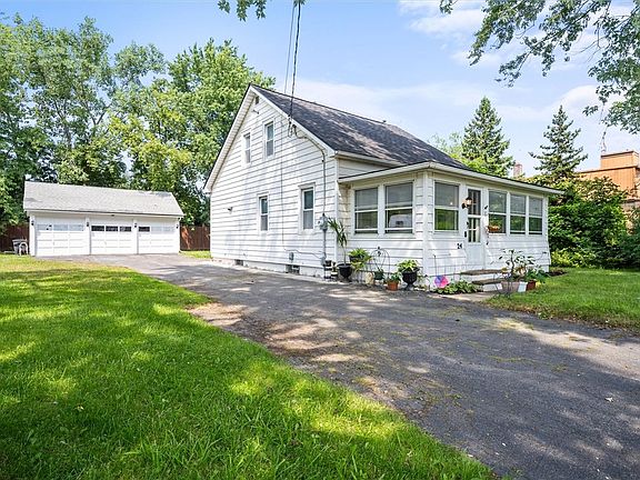 Welcome Home to this charming 3-bed, 2.5-bath Cape Cod where comfort meets functionality. Enjoy your morning coffee or unwind on the large enclosed front patio/3 season room. Head inside to find the spacious living room bathed in natural light, creating a cozy place to relax. The eat-in kitchen is perfect for hosting large gatherings where everyone can be together. The first floor is completed by a versatile bedroom or office option and a spacious full bath. Upstairs, discover another full bath and two bedrooms, including a main bedroom with ample closet and storage space. Before heading outside to the backyard you will find an enclosed back patio, perfect for a mudroom. Outside you will find a massive 3-car detached garage, perfect for a mechanic or workshop option in addition to storage and parking cars. Partially finished basement with waterproofing already completed. Roof and AC 2023, vinyl siding. Don’t miss this one!