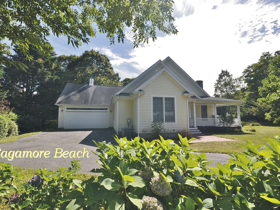 Pretty Contemporary located on a quiet road with a path to the beach. This 4 bedroom Colonial is easy living as most bedrooms are on the first floor. 2 covered porches to enjoy the sounds of the ocean or the waterfall Koi pond in the side yard. The sun filled kitchen is a delight to entertain in with a center island seating area, hardwood floors, stainless steel appliances, gas cooking and access to the back yard. A cathedral ceiling in the bright and airy dining room. Entering the living room you'll find a wood burning fireplace, custom built cabinets and hardwood. Relax in your master suite with a walk-in closet, full bath with a claw tub and shower. Bedrooms 1 & 2 are also on the 1st floor with closets and hardwood. A fabulous mud room right off the 2 car garage with a sink, washer/dryer and storage cabinets. Natural gas heat, dryer, cooking and A/C. Just under a 1/2 acre of level land with an outdoor shower, invisible dog fence, patio area, mahogany decks. Easy access off exit 2.