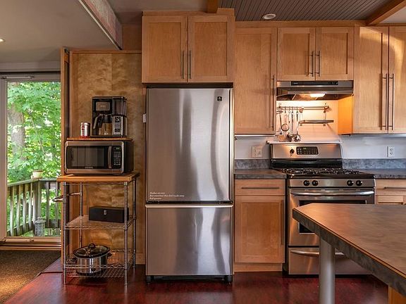 - Kit Dscrp: Flooring - Vinyl, Pantry, Main Level, Dining Area, Cabinets - Upgraded, Deck - Exterior, Breakfast Bar / Nook, Stainless Steel Appliances, Closet, Open Floor Plan, Recessed Lighting, Remodeled, Exterior Access, Gas Stove, Lighting - Pendant