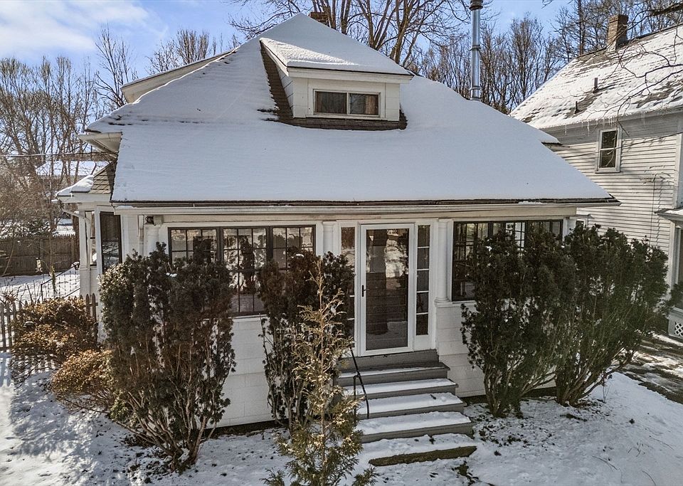 Discover the perfect blend of historic charm and modern convenience at 24 Pine St, a delightful chalet style bungalow on a picturesque corner lot in Greenfield! This 3 bed, 2 bath home offers flexible main level living with a spacious eat in kitchen, formal dining area, and cozy living room with wood stove. A sunny primary bedroom and full bath with a classic claw foot tub complete the 1st floor, where oversized windows bring abundant natural light highlighting the beautiful hardwood floors and trim throughout the main level. Upstairs, 2 generously sized bedrooms plus an unfinished attic space provide exciting opportunity for expansion or creative use. Enjoy a large three season front porch/sunroom, a covered kitchen porch, and a serene, yard with iconic picket fencing and mature plantings along a quiet, dead end street. A partially finished basement with 2nd full bath offers even more possibilities. Come experience the timeless character and potential of this charming Greenfield gem!