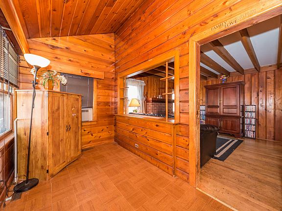 Charming bungalow with 3 bedrooms and 1 bathroom. Minutes from water shore. Raised ceiling in the foyer. Rooms surrounded in hard wood paneling and a beamed living room. Gives the room a unique sense of style. 3rd bedroom is a loft. Upstairs room has a raised ceiling as well. Great starter home. Paver walkway to home and paver patio in back. Book your appointment today. An optional Home Owner's Association can be joined.