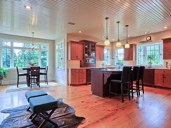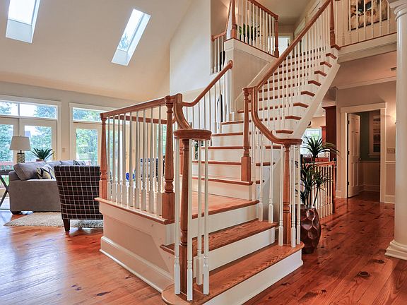 Custom built 2 story semi-traditional open floor plan home located in gated community of Bent Creek where premiere lifestyle living offering country club, 18 hole golf course, swimming, tennis and club dining experiences with excellent schools, shopping, dining, and healthcare all within easy reach. Designed for a casual relaxed atmosphere, the home provides abundant natural light through large windows in all rooms, with high ceilings, and skylights. The heart of the home kitchen includes solid wood shaker cabinets, large center island with prep sink, granite countertops and tiled backsplash, built in high end appliances including 5 burner gas range with downdraft and overhead pot rack, trash compactor, custom glass doors, spice cabinet, abundant storage, desk area, a fireplace, and dining area surrounded by windows and door to deck. Pendant island, recessed and undercount lighting and tongue and groove ceiling complete the kitchen. A formal dining room handles large gatherings with ease. French doors open to den/office with built-in cabinetry and large bay window. An additional fireplace in family room with double sliding doors to deck and screened in porch, skylights and high vaulted ceiling brings open concept living full circle. The spacious first floor cathedral ceiling master suite with adjoining screened in porch provides an oasis for morning coffee. The ensuite bath offers marble top cabinets, glass enclosed shower, enclosed toilet area, jetted corner tub with marble surround and walk-in closet. A half bath and laundry room with lots of storage, built in bench and coat rack complete the first floor. Three spacious bedrooms and full bath with double sink vanity and enclosed tub and toilet area complete the second floor. An open staircase descends to an inviting lower level where French doors lead to another family room with slider door to covered patio. A second large multi purpose room and a fully equipped gym with padded flooring completes the finished space with an additional 600sf of unfinished storage area. Abundant storage area is also included in the oversized two car garage. Newly installed landscaping has been designed to provide low maintenance.