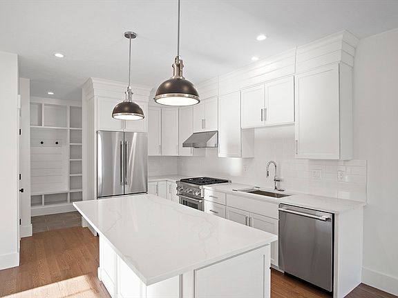 - Features: Flooring - Hardwood, Kitchen Island, Cabinets - Upgraded, Exterior Access, Open Floorplan, Recessed Lighting, Slider, Stainless Steel Appliances, Gas Stove, Lighting - Pendant