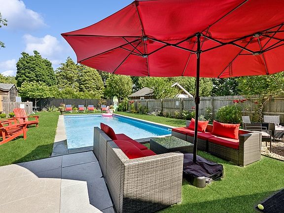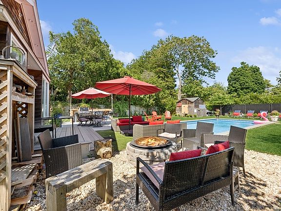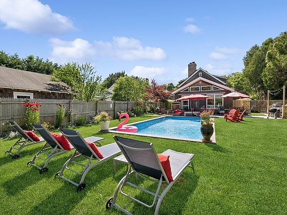 Welcome to 24 Pleasant Lane, a stunning shingle style home nestled in the coveted East Hampton Village. Offering an exceptional blend of privacy and convenience, this property stands as a quintessential Hamptons retreat, perfect for both summer escapades and year-round enjoyment. This elegant residence is situated just moments from the bustling main street, ensuring the best of both worlds - the quietude of a serene neighborhood and swift access to East Hampton's vibrant lifestyle. A stone's throw away from the Long Island Rail Road (LIRR), the Hampton Jitney, and an array of local delights like Hampton Chutney, Villa Italian Specialties, and The Sweet Spot's ice cream, you are always within reach of local fare and entertainment. Not to mention the proximity to Herrick Park, art galleries, and the weekly Farmers Market adds to the charm of this location.Boasting 4 opulently designed bedrooms and 4.5 luxurious baths, the home has been crafted with attention to detail and comfort. On entering, the chef's kitchen invites with its eat-in island; it flows into the living room where cathedral ceilings and floor-to-ceiling windows allow natural light to accentuate the space. The seamless transition to the outdoor oasis is perfect for al-fresco activities. A sunbathed pool with ample lounging space promises endless summer days of enjoyment.The first floor features a primary suite with a generous walk-in closet and a sumptuous large bathroom, complemented by an additional guest bathroom. Ascend to the second floor to discover three spacious bedrooms paired with two full baths, all crafted for relaxation. Descend to the lower level to reveal a recreation space ideal for entertaining, complete with counter seating and another full bath. At 24 Pleasant Lane, the necessity of a car becomes obsolete. Top restaurants, chic boutiques, and the allure of Main Beach are all easily accessible by a quick bike ride or leisurely stroll. Experience the ultimate Hamptons lifestyle in a home that embraces sophistication, convenience, and comfort.