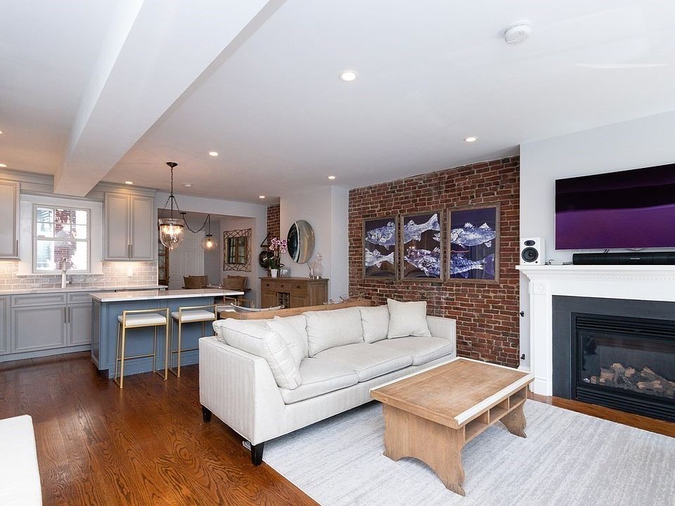 Beautifully Furnished Single Family Residence! Just off Mon Sq! Impeccably renovated c.1851 residence within Charlestown's historic gas light district! This 3+BR/2.5BA home offers 1,800+SF of beautiful living space. The sun-filled living room w/gas FP and exposed brick wall opens to a newly updated Gourmet kitchen featuring white cabinetry, stainless appliances, quartz countertops, and an island w/bar seating. Just off the kitchen is a wonderful dining area with a wall of glass French doors out to a deck and private patio perfect for entertaining & grilling! Large custom half bath w/laundry. The second floor features a versatile library/playroom, a spacious sunny front facing bedroom w/three windows and oversized closet, a delightful rear bedroom overlooking the patio, and full bath with stone topped white vanity and bathtub. Amazing top floor master bedroom offers a soaring vaulted ceiling w/two skylights, walk-in closet, and large full bath w/walk-in shower. 6 or 12 month lease!