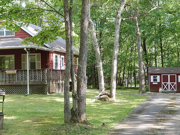 **** BEAR CREEK LAKE **** THIS 4 BEDROOM SKI CHALET/ SUMMER BUNGALOW WITH 1.5 BATHROOMS IS LOCATED NEAR POOL AND RECREATION AREA AND A SHORT WALK TO THE STOCKED LAKE. MINUTES AWAY FROM 3 MOUNTAINS FOR SKIERS AND STATE GAME LANDS FOR HUNTERS. HOUSE IS COMPLETELY FURNISHED AND READY FOR FUN. MAINTENANCE FREE EXTERIOR WITH HUGH COVERED PORCH AND LARGE DETACHED SHED FOR STORING TOOLS OR TOYS. CLOSE TO THE NEW EZ PASS AND MANY OF THE POCONO ATTRACTIONS.