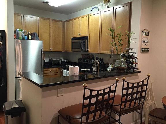 Beautiful 1 bedroom 1 bathroom in Port Imperial. Nicely updated with Stainless steel appliances, granite countertops, and has a washer/dryer in unit. This unit includes one outdoor reserved parking spot and boasts a beautiful partial city view. This elevator building also features a Gym, pool, basketball court, yoga studio with optional classes, a Lounge, Media Room with stadium seating, and Business center. You will have the option for an alarm system along with 24 hour security guard w/ package delivery, and fob key access. Within walking distance you will have the ferry, light rail, bus stop, Starbucks, supermarket, wine/liquor store, dry cleaning, bank, and bars/restaurants! Also, a short drive away are target, Trader Joes, Whole Foods, City Place at the Promenade, the movie theater and a lot more great restaurants! You will be only a 15-30 minute drive from your door to NYC! Light rail goes to Hoboken and Jersey City in 15 minutes or 10 minute drive to Hoboken! 1 Month Broker Fee, 1 month security deposit. $40 credit check per person. 1 Year lease.
