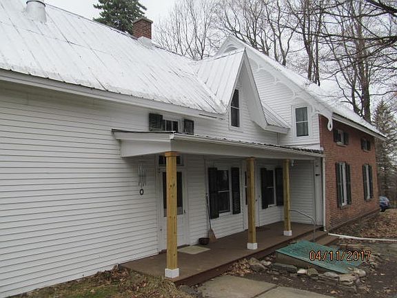 Absolutely charming 2 story brick home rich with architectural detail from the period it was built. Constructed in 1868, this home features beautiful wood floors in formal dining room, formal living room and front foyer. The 9" baseboards anchor the rooms. Most windows have been replaced with the exception of large picture window in Kitchen area. The kitchen was an addition and is large with plenty of space for an eat in area. The first floor rooms are large, sunny and inviting. There is a flow to the home that is graceful. A bedroom, an additional living room, as well as the laundry room and bath are on the first floor. Mount the solid wood stairs in the front foyer and you will find 4 additional bedrooms with walk in closets, 1/2 bath, and second set of stairs. A large storage area and separate office, with a wonderful view of the back of the property, complete the second floor. There is a front and side porch, as well as a covered porch on the paved driveway side of the home. This is large enough for chairs. The barn doubles as the garage with great storage space and plenty of room for all your outdoor equipment. There is a delightful children's playhouse alongside the pump house. The back yard is bordered on one side with a field stone fence.