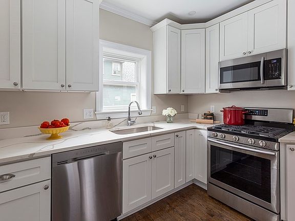 Rare offering! This luxurious condo is located on a beautiful street treelined street in Readville Hyde Park. This 2 bed, 1.5 bath condo has a suburban feel right in the city of Boston. Enjoy your morning coffee outside on your front or back porch. The gut-renovated kitchen features custom white cabinets with ample storage, Samsung SS appliances and Quartz countertops. This well-designed condo features hardwood floors throughout, an open floor plan, a large living room, dedicated dining room, well-sized bedrooms, tons of closets, dedicated off-street parking and additional basement storage! Off the kitchen is the cutest nook with built-in storage and direct access to a guest powder-rooms. The main bathroom has been completely renovated with all new fixtures, beautiful porcelain tiles and a Quartz countertop. One block away are several bus routes and the commuter rail Readville stop for The Fairmount Line and the Franklin Line/Foxboro Pilot. Get downtown within 30 minutes.