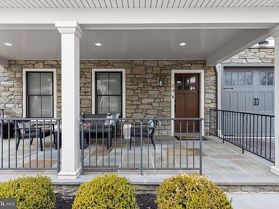 Welcome to 24 Price Avenue, nestled in the charming neighborhood of Price Crossing, Narberth’s best-kept secret. This former model home is equipped with a full home elevator. Built by Vincent P. Sposato in 2019, this home is part of a boutique community of nine luxury townhomes, offering the perfect blend of low-maintenance urban living and sought-after privacy. Walking distance to Narberth's restaurants, SEPTA train station, shops, and two public parks, this home is perfectly positioned for convenience. The thoughtfully designed outdoor spaces include a flagstone front porch, a spacious deck off the kitchen, and a lower-level walk-out patio. This home features three bedrooms, each with its own ensuite bath, plus two additional powder rooms. Inside, the details make a lasting impression with hardwood flooring, custom lighting, shiplap walls, ceiling fans, built-in speakers, and custom millwork. The living room, flooded with natural light, exudes modern elegance with a gas fireplace framed by custom bench seating and a shiplap wall. The powder room off the living room adds to the functionality of this space. The state-of-the-art kitchen features 42” custom white cabinets paired with darker cabinetry on the island, complemented by quartz countertops, a matching backsplash, and under-mount lighting. The kitchen seamlessly flows into the dining room, creating an ideal setting for both cooking and entertaining. The dining room with shiplap wall and modern lighting makes a statement. The dry bar, with extra storage and floating shelves, adds to the home's appeal. The deck offers a tranquil space surrounded by natural privacy from mature trees. On the next level, the primary suite includes a custom-fitted walk-in closet, hardwood flooring, and a ceiling fan. The ensuite bath, designed in calming natural tones, features a dual vanity and heated floors. The ceramic tile walk-in shower features a glass door, rainfall showerhead, and a full bench for added comfort. The laundry room, equipped with a sink and additional storage, adds practicality to this level. Down the hall, the second bedroom welcomes you with an oversized window and generous closet space. The ensuite bath features a sleek white tiled shower with a frameless glass door. The oversized third bedroom is a private suite, offering generous space and abundant natural light. The ensuite full bath features a tub/shower combination.There is also additional storage space on this level. The lower level provides versatile space, perfect for creating a combination of rooms to suit your needs, complete with a powder room. Sliding glass doors lead to a stone patio, extending the living space outdoors. The two-car side-entry garage has storage closets and a hose bib. The exterior is finished with durable James Hardie Plank siding, oversized black-trimmed Pella double-hung wood windows, and a metal standing seam roof over the covered porch.