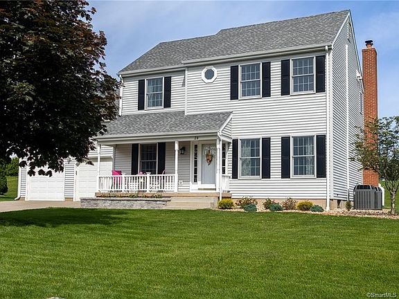 Beautifully updated, meticulously cared for this home will "wow" you! Located in Fairlawn Farms, this 4 bed/3.5 bath, 2450sf colonial has been totally updated past several years. Enter onto the groomed yard, cement driveway to find a covered porch home with stone raised gardens & river-rock planting beds, new walkways. Open floorplan offers 9ft ceiling, refinished hardwood floors, crown moldings, flat ceilings(no popcorn), plenty of recessed lighting for a bright inviting lifestyle, gracious living & dining rooms for wonderful entertaining. Large fam-rm offers a new gas fireplace plus addition w/ cathedral family room/sunroom, full bath & laundry room. A full wall of windows offers a lovely view of the private rear yard, atrium door to enjoy patios onto the gorgeous lawn. Kitchen offers custom cabinets, quartz counters, porcelein tile, upgrades galore. Upstairs is remodeled with new carpet in bedrooms, solid surface in hall & 1 bedrm. Spacious m-bedrm has a walk-in closet & full bath with a flush entry for shower completely tiled with custom shower heads/handheld fixtures. Each doorway has a trendy sliding barn-door. Large 4th bed is a bonus room, with an extra ductless high-end AC unit. 3 car garage w/ rear door! Mechanically, structurally, inside & outside remarkably improved with custom features, high-quality upgrades. Amazing pride of ownership- this home is a gem! Conveniently located near highways, great shopping, restaurants, under 30 min to both New Haven & Hartford.