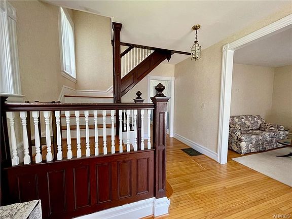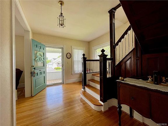 Tons of character in this 5 Bed, 2 Bath City Colonial! Beautiful, natural staircase & bright white trim greets you in the foyer as you pass through to the comfortable living room with stunning hardwood floors. Formal dining & eat-in Kitchen add convenience in entertaining - includes Dishwasher, electric oven, & refrigerator! This homes boasts 1st floor laundry, addition with full bath, & 1st floor bedroom/family room great for in-law. 2nd floor offers 4 nice, bright bedrooms -one with charming window seat- and 2nd full bath with clawfoot tub & white wainscoting & shutters! Full walk-up attic for ample storage. Central Air, new 200 Amp electric service being installed, & basement features glass block windows. Open front porch, one car detached garage with door opener & deep yard! 2021-08-03