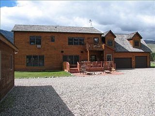 Surrounded By Breathtaking Mountain Views & A Short Walk To The River/Endless Public Access. Beautiful 2-Story Contemporary Design, Great Room With Fireplace, Formal Dining Rm/Complete Wet Bar, Media Rm, Master Suite With Large Office/Den, Quality Finish Throughout, Heated/Finished 3 Car Garage, Wired For Surround Sound, Many Extras! High Quality 2-Bed Guest Cabin/Full Bath/Storage/No Kitchen.