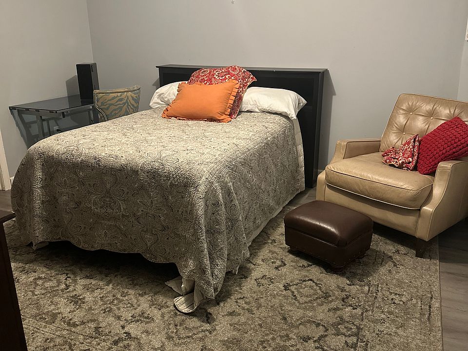Laid back professional woman seeking the same -Offering 2 spacious fully furnished rooms in the basement - one bedroom and one private sitting room. 1/2 bath on main floor for your use.