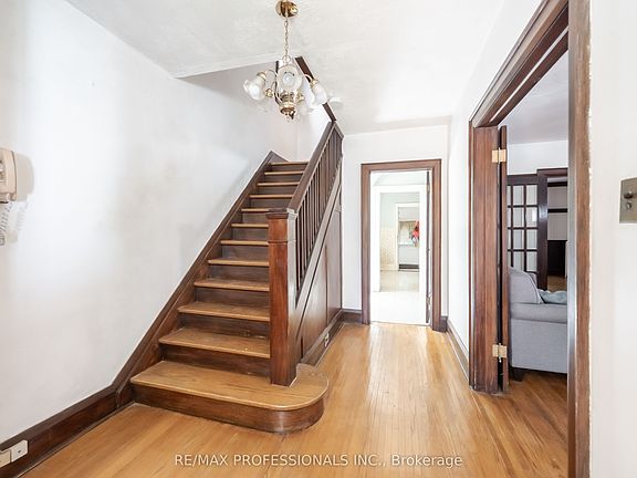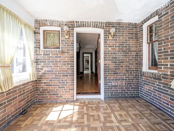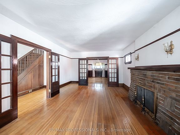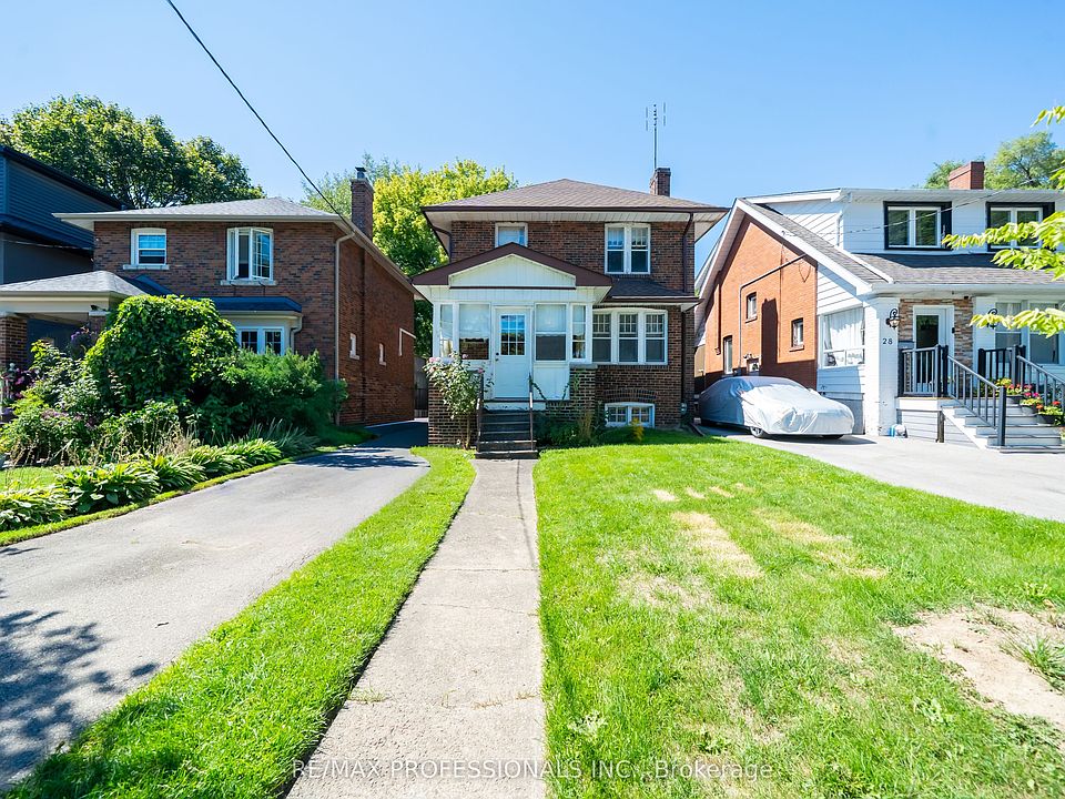 Opportunity knocks at 24 Queens Ave - a 4 Bedroom home in Old Mimico with a ton of Character and Charm. This Detached, 2-storey, solid brick home sits on an incredible 34 x 134 foot lot, features a 4+ car private driveway and is located directly across the street from Vimy Ridge Parkette and War Memorial (a protected and Historic site), and steps to The Lakeshore with close access to Lake Ontario. The home features original hardwood flooring throughout, 4 great size upper-level bedrooms, elegant dining and living room with original solid-oak wainscoting, staircase, trim and french doors! - ready for your to restore this original elegant charm! The home also features an enclosed front porch, separate/side door entrance with access to large/full unfinished basement- potential for creating a separate apartment/additional living space. *Updated/newer roof* Well maintained home- been in the same family for over 75 years! The large backyard has a ton of potential- create your own oasis or potential to construct a large garage/ garden suite or both! Opportunities are endless. Old Mimico- one of Toronto's most historic communities. Steps to TTC transit/ close to Mimico GO Station and nearby schools and parks. Quick access to Gardiner/QEW. Walk along the Lakeshore with all of the amenities you need - shops, eateries and much more. Take the virtual tour! (some photos virtually staged)