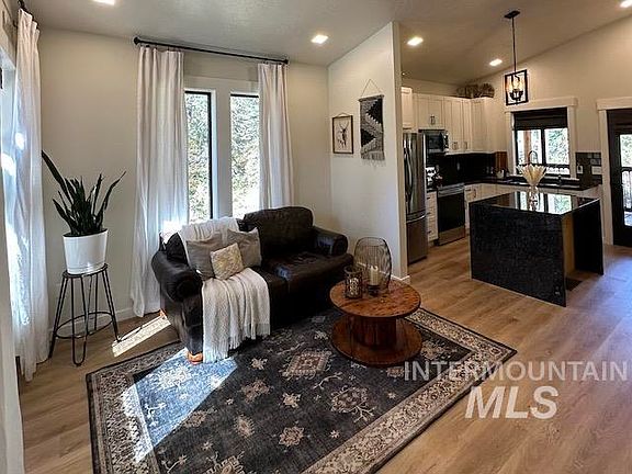 Escape to a paradise of modern comfort and natural beauty in this stunning 2021-built home situated on a spacious .46-acre lot in the heart of Garden Valley. Notable features include a top-of-the-line water filtration system in the kitchen, beautiful waterfall granite counters on the kitchen island, a Traeger grill for outdoor culinary adventures, dual-zoned HVAC, stainless steel appliances and a shed for all your storage needs. Custom window coverings lend an air of sophistication, while the main-level primary bedroom offers both practicality and comfort. The wood-burning fireplace, complete with an insert and tile hearth, is the focal point of a cozy and warm entertaining area. Step outside onto the covered deck to enjoy outdoor relaxation, rain or shine, and savor the beauty of the .46-acre lot. Whether you seek a tranquil getaway or a full-time residence, this Garden Valley home promises the best of both worlds. Immerse yourself in the serene surroundings while enjoying the modern amenities.