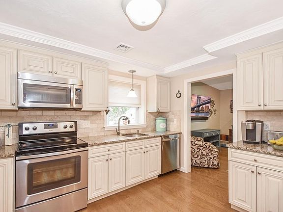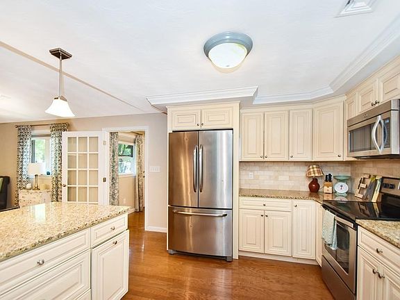 - Kit Dscrp: Main Level, Countertops - Stone/Granite/Solid, Cabinets - Upgraded, Breakfast Bar / Nook, Stainless Steel Appliances, French Doors, Open Floor Plan, Flooring - Laminate, Remodeled, Peninsula, Lighting - Overhead, Lighting - Pendant, Crown Molding