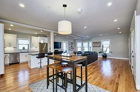 DORCHESTER/SOUTH BOSTON BORDER. Luxurious condo with 2 bedrooms plus an office, 2 bathrooms, Master bedroom with en-suite bath, 1346 sqft, open floor plan with Balcony and GARAGE! Beautiful 2016 new construction building in a cul-de-sac with only 7 units and professionally managed. Quality kitchen equipped with VIKING stainless steel appliances, quartz countertops, hardwood floors throughout, high ceilings, central A/C, Nest Thermostat with app., custom-made Hunter Douglas silhouette window shades, walk-in closets, balcony off living room with natural gas connection for grill, washer/dryer in unit, video intercom and camera in parking area, separate storage room and much more. The property is located in the desirable Polish Triangle and minutes to Andrew Square T station, restaurants, South Boston Beaches, and interstate 95 & 93.