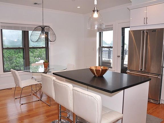 PENTHOUSE! 2 bed 2.5 bath with covered parking located in polish triangle on the Dorchester/South Boston line. This Spectacular unit encompasses the entire top floor and a wrap around direct access roof deck and front patio with amazing city views! Interior Includes large eat in kitchen with Viking stainless steel appliances and Quartz counters. Huge living room with decks on both sides. Two large master suites with en suite baths & built in closets. Separate 1/2 bath for guests,Surround sound, central A/C, video intercom system, crown molding, deeded storage, piped gas for grills, steps Andrew Square Redline T, walking distance to beaches and restaurants and easy access to highway and downtown Boston. Also includes deeded roof rights for future potential construction.