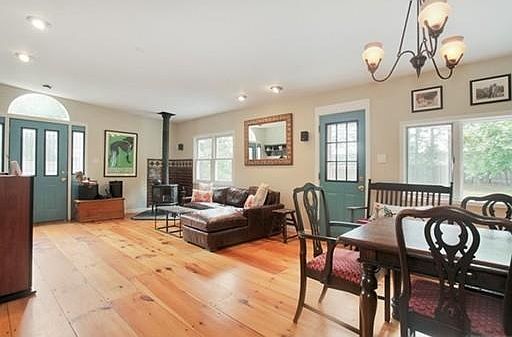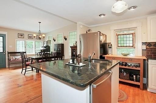 Style in a Awesome location near Acton Train, Shopping, Conservation trails and the Assabet River! Open Concept Living, Dining, and Family Rooms with beautiful Hardwood floors and a woodstove. Granite & Stainless Steel Kitchen with Gas cooking by propane! There are so Many Custom Features and Updates with a new boiler in 2014. The 1.5 baths have been updated; the main bath offers both a tub and a shower with stunning features. All this set on a Pretty lot Professionally done with a Fenced rear yard offering a stone patio and fireplace. 2-3 bedrooms the 3rd bedroom is used as a study and does not have a closet. The one car detached garage was converted to a work shop. At days end you can Relax on the Lovely Farmers Porch! Come in and enjoy this pretty home with a wonderful dcor.