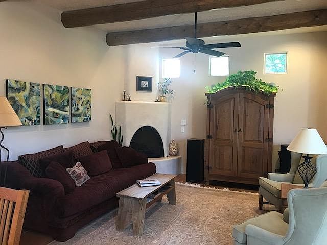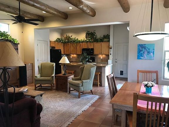 Single level 2 bed, office, 2 bath home in Rancho Viejo, tile and bamboo floors, vigas and gas burning kiva FP, granite countertops in the kitchen, curbless shower in the master bath, ceiling fans throughout, in-floor radiant heat and evaporative cooling. 2 car garage with opener. Fully landscaped with portal off the kitchen and large, brick patio. All appliances including washer and dryer. No smoking. Please drive by! Owner is NMREB Owner pays HOA fee which includes refuse and recycling. Tenant pays all other utilities.
