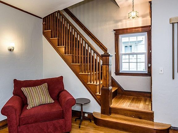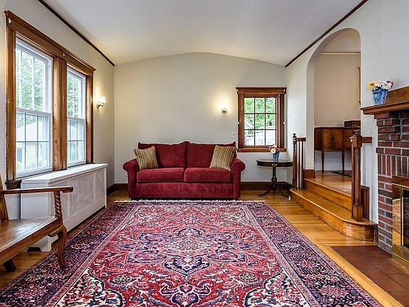 Beautiful side-entrance Colonial on private way. Updated eat-in kitchen with honed granite counters, tiled backsplash, and stainless steel appliances. Large living room with arched ten-foot ceiling and brick fireplace. Formal dining room with abundant natural light and two built-in hutches. Three bedrooms plus a very large home office or family room on upper level. Freshly painted interior and exterior, gleaming hardwood floors, and insulated windows. Deck off kitchen is perfect for dining and relaxing. One-car detached garage with electricity plus carport. Steps to Commuter Rail and neighborhood shops and restaurants.