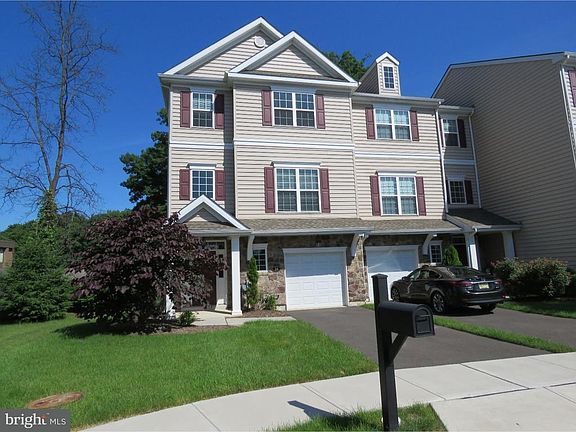 Beautiful 3 bedroom 3.5 bath end unit with stone front on lower level. This 3 story home is 4 years young. Great floor plan with additional light from side windows on end unit. Brand new hardwood in lower level entry and hallway. All new carpets on main and upper level. Lower level has 2 story foyer and leads to large family room with slider to back patio. Family room has large full bath with shower. Could be used has bedroom on lower level for in laws or guest. Foyer also has entry to over-sized one car garage. Large storage closet and utility room on lower level. New carpets on stairs to main level. Open staircase with oak railings. Beautiful custom side widow above stairway landing. Formal living room with 1/2 wall to open 2 story foyer. Open formal dining room with columns, crown molding and chair rail. High hat lighting and brand new carpets. Large Kitchen with plenty of 42"custom wood cabinets and large center island. Beautiful granite counter tops in kitchen. GE Stainless refrigerator with stainless oven with gas range. Matching stainless built in dishwasher and mirco-wave. Sliding door on kitchen leads to 2nd story deck on back of home. Full side laundry room with washer & dryer and laundry tub. Powder room on main level. Open staircase to Upper level. Good size master bedroom with tray ceiling and high hat lighting. Huge 10' x 6' walk in closet. Large tiled master bath with corner soaking tub. Double shower with custom tile work. Two separate sinks with vanities. Two other good size bedrooms with double closets. Hall bath with tub. This home just had paint touch-up and brand new hardwood on lower level and brand new carpets in lower level family room, Living and dining room, all stairs, upper level hallway and all three bedrooms. Front driveway to garage with opener. Minutes from I-95. Quick commute to center City Philadelphia or Princeton. Close to turnpike and bridges to New Jersey or New York. Close to train. Move in condition.