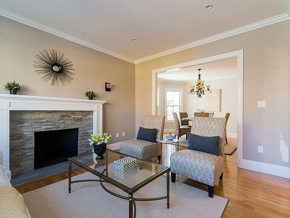 Spectacular renovation of second and third floor unit offering great space with an abundance of natural light. Open layout has great flow for entertaining with large private deck off kitchen/family room. Living room with fireplace, french doors and adjacent office flows into dining room and kitchen. Three bedrooms and two baths including a gorgeous spa like master bath and walk- in closet complete this level. The 2nd floor offers a fourth bedroom, full bath and a bonus space. Plenty of parking including a garage spot. Close to Underwood Elementary, Bigelow Middle School and quick access to the Mass Pike/Boston.