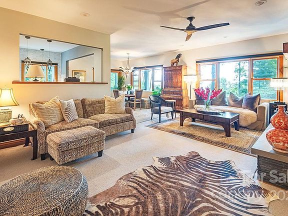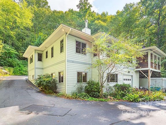 This custom Arts & Crafts home is a must see. Tucked away at end of road on private 4+ acre wooded lot with long-range mountain views. The home of a custom builder, and then interior designer, the craftsmanship and attention to detail are apparent. Gorgeous custom hickory doors and finishes from wood harvested on site, custom kitchen with a waterfall quartz island, African Teak shelving, marble backsplash & KitchenAid appliances. Outside living features a covered porch with hot tub, TV & gas fireplace to enjoy the views. Home features an open floor-plan, beautiful hardwoods under carpet, hand forged lighting fixtures throughout, California closet & zen ensuite bathroom. Garage/man-cave on lower level with heated workshop/studio space and tandem parking. Large wood clad windows and great light throughout. Located at the end of a quiet, gated community, quick 10-12 minutes to Charlotte St and Merrimon exits. 4+ acre lot, completely private setting.