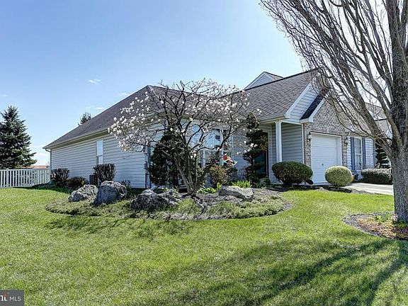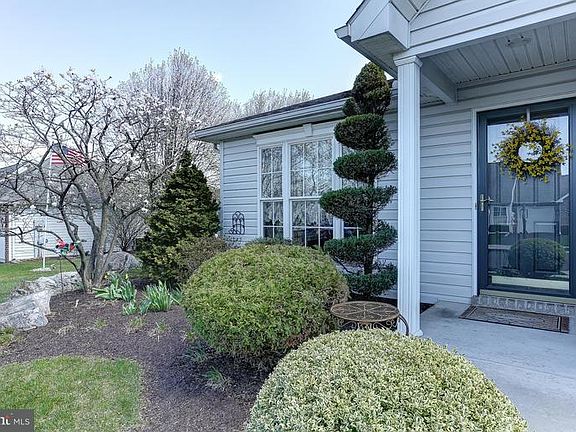 Beautifully appointed inside and out! Stylish end unit is the beneficiary of a multitude of recent updates including durable laminate flooring and a palate of neutral paint. Extra touches include crown molding, striking lighting fixtures, ceiling fans and overhead storage in the garage. Serving as the hub of the home, the spacious kitchen features an island with seating, abundant cabinetry, pantry closet and a brand new refrigerator. The kitchen overlooks an elegant dining area and receives natural light from the sunroom to the rear. With glass-paned pocket doors, the Sunroom transforms into a separate retreat. Enjoy views of the countryside from the patio and fenced rear yard. Economical natural gas, minimal HOA fee, and the inclusion of all appliances combine to make this home a tremendous value.
