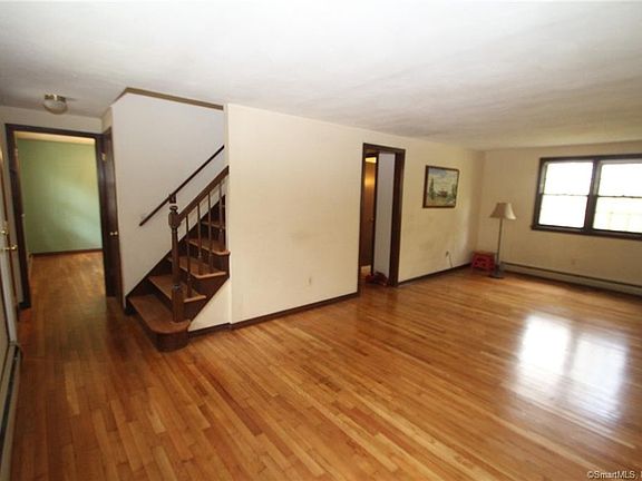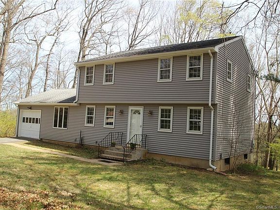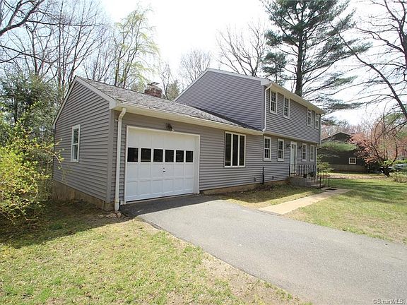 The home you have been waiting for. Great location at end of cul-de-sac with very private yard offering 1.05 acres of beautiful woods with plenty of clear areas for pool, swing-sets, gardening and more. This 3 bedroom, 1.5 bath, one car garage is ready for you. Just minutes to exit 68, 69 and 70 and less than 10 minutes to Uconn. This home features wood floors in every room (Vinyl in kitchen, front to back family room with fireplace and brand new sliders with direct access a 12x16 deck and to garage . Kitchen has been updated with new countertops featuring a comfortable breakfast area, gas range, plenty of counter and cabinet space. Recently remodeled half bath on first floor with new fixtures and vanity. Front to back living room can also be a fantastic office space or play room or just a separate living area or media room. Second floor has the 3 bedrooms and a full bath with new tub and vanity, front to back primary bedroom with 2 closets and wood floors, other two bedrooms with plenty of closet space. Additionally, this home has a full-height walk-out basement currently unfinished with potential for more living space if needed. Other features: whole-house fan, wall AC, furnace with 4 zones (one currently not being used, invisible fence, R60 insulation in attic, lots of stone walls, 30 yr roof installed in 2004, recently power washed, paved driveway, vinyl siding, Ethernet cabled; Cable TV, DSL, Digital Antenna all available; and many other additional upgrades.