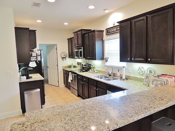Beautiful MOVE-IN READY home in Driftwood Estates! Home features SOLID WOOD FLOORS in the living room, master bedroom, and guest bedroom/office. Home is an open concept floor plan. Kitchen features: Beautiful GRANITE COUNTERS, Mocha Cabinets, STAINLESS STEEL APPLIANCES, and tile floors. Master bedroom is large enough for a King size bed suite, solid wood floors, Treyed ceiling, and crown molding. Master Bath has double vanity, garden tub, separate shower, and very large walk-in closet. Guest bath features granite counters with tub/shower combo. Home has a beautiful outdoor space with covered lanai and large fenced-in back yard. All appliance with exception of washer and dryer convey with home.