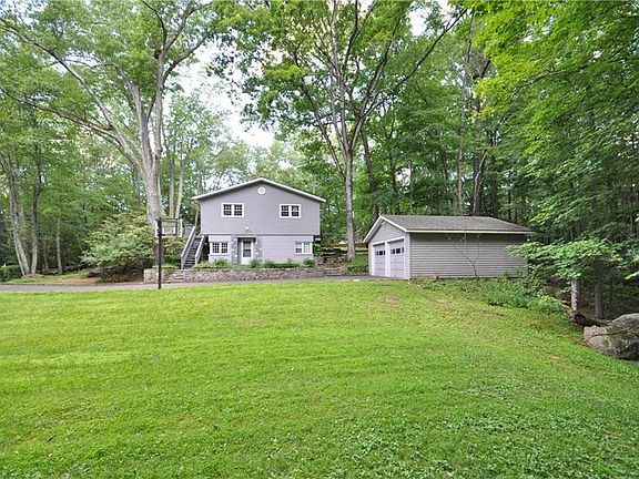 Impeccable ranch with partially finished lower level nestled on 3+ gorgeous acres.This recently updated home is located in a highly desirable area of higher end homes.Newer 4 bedroom septic (1996) eases expansion. Brand new furnace with 6 zones. Updated bath and kitchen. Gleaming hardwood floors throughout. Light and bright open floor plan. Massive 12x4 brick masonry fireplace with efficient Elmira wood stove insert. Lower level 16 x 12 finished room with built in bookshelf, perfect for a home office or den. New siding, insulation, windows, roof in 2005. Updated electrical panel. Generator hookup, security system. Fenced in raised bed garden off kitchen. Near lake, boating, vineyards, great restaurants and more! 70 minutes to NYC.