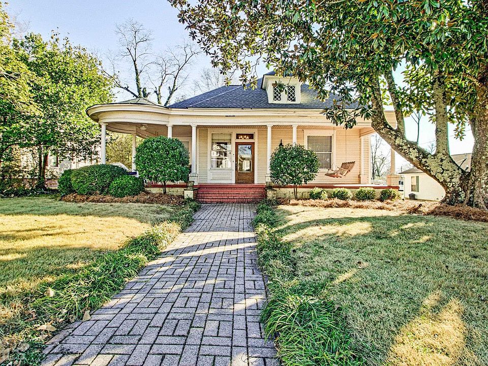 Location, location, location! If you are looking for a home that is walking distance to Downtown Newnan PLUS a large, private yard and modern updates on the interior, this one is for you! Enter from the stunning front porch of this historic home, with extra space on the side for a gathering place on those perfect Fall/Spring evenings. Through the front door, enter into the foyer with high ceilings and original hardwood floors. The living room showcases a cozy, white fireplace, stained glass and built-ins. The updated kitchen is the perfect spot for entertaining. With solid surface countertops, a large island and all light cabinets, this kitchen is a stunner! The attached butler's pantry provides a spot for tons of extra storage options. Off of the foyer, to the right, you will find the first bedroom. With a custom fireplace and wooden mantle, the cozy touches make this large room feel warm and inviting. To the left of the foyer, you will find the 3rd bedroom, which is currently being used as a dining room, but can easily be converted back into a bedroom with another gorgeous fireplace and French doors. The two secondary bedrooms share an updated hall bath with a clawfoot bathtub and wainscoting and shelving for extra storage. Down the hall, you will find the master bedroom with another fireplace and custom wooden surround. The stunning master bathroom is attached and features a custom glass enclosed shower and custom double vanity with added storage space. The backyard provides a large grassy area, storage shed and private, off-street parking. There is really no box left unchecked on this impressive property! Come see it for yourself before it's gone!