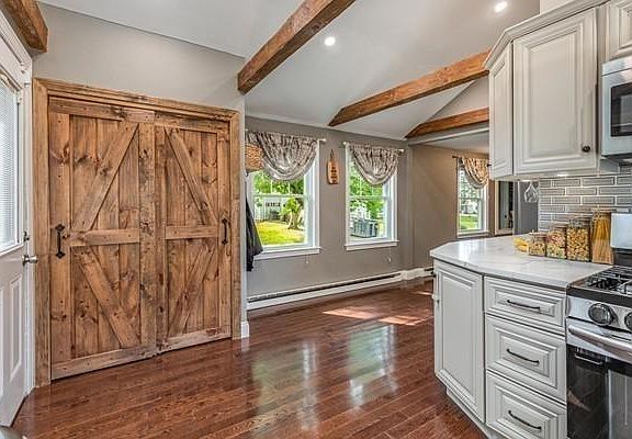 Magnificently transformed Cape into a luxurious retreat, situated perfectly in coveted South Weymouth. Roland Rd. is closed off to traffic, and abuts beautiful nature close by; Weymouth Great Pond. The grounds boast a private deck, complimented by a fenced in yard. Only minutes to Whole Foods, Starbucks, and everything Weymouth has to offer. Stepping inside is grand, barn door coat closet all amongst beautifully exposed beams, a cathedral ceiling, and recessed lighting. Beautiful brand new first floor master bed and luxury bath. The kitchen has been impeccably designed, new cabinetry, appliances, and Quartz counters. Off the kitchen, an elegant dining room perfectly accented by it's lighting. No expenses were spared with the living room, it's expansive cathedral ceilings complimented by numerous built ins (wired for sound), loft storage space, and a palladian window complete with a picturesque window seat. Schedule your appointment this Monday (11th) between 2-6.
