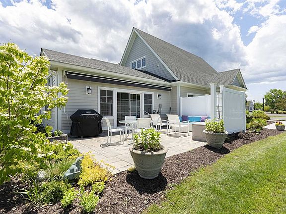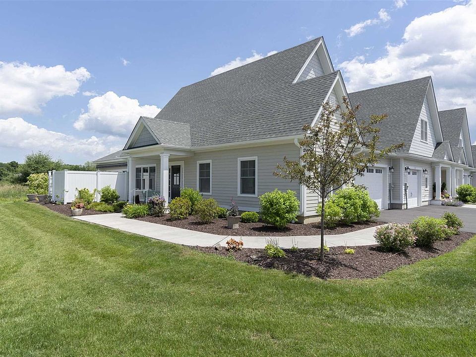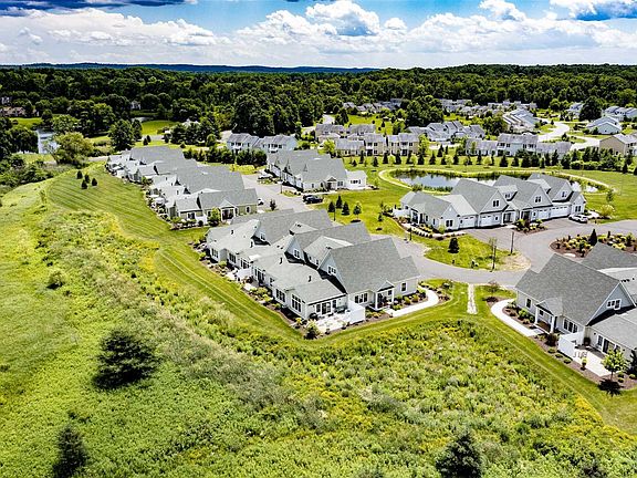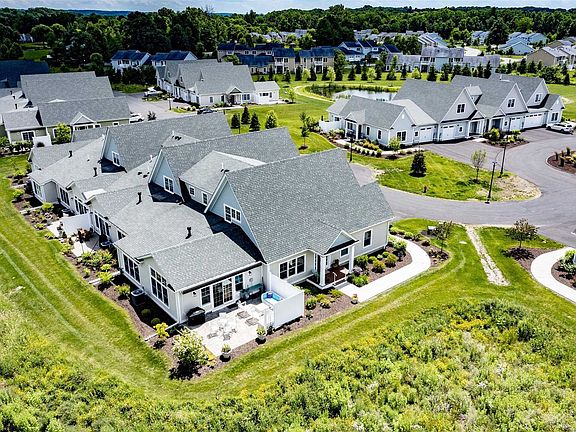 A unique Chelsea model condominium at The Gardens at Rhinebeck. This 3 bedrooms, 3 bathrooms end unit is luxurious, spacious and has many upgrades. A light filled quiet home sited with open views of the meadows and sunsets. The sunny first floor features a large foyer, dining room, eat-in kitchen, large living room with vaulted ceilings, propane fireplace and glass doors leading to private patio, the primary bedroom suite has a bump out office/sitting area, 2 walk-in closets and a full bathroom, a separate wing off the foyer has a full bathroom and office/guest room, and a large laundry/pantry room. The second floor features a living room area, 2 bedrooms and a full bathroom. The numerous upgrades include Quartz countertops, custom Marble tile backsplash, upgraded energy efficient stainless steel kitchen appliances, custom shades, built-in closets, Oak floors throughout, outdoor watering system for gardens, luxurious bathrooms with towel warmers etch.... Smart thermostat, sprinkler system, water softener and security system. The private stone patio overlooks meadows of wild flowers and has a retractable shade awning. The 397 square foot two car garage has a special garage-track flooring and plenty of storage area. HOA fee includes snow removal, lawn maintenance, landscaping, garbage pickup and the use of Clubhouse, with a fitness room, social hall area, swimming pool and tennis/pickle ball courts. A wonderful full time or weekend home centrally located only minutes to Rhinebeck village, Rhinecliff Amtrak train station, Ferncliff forest, Rhinebeck town library, Bard college and close to all area shopping. A must see to fully appreciate all this home and location has to offer.