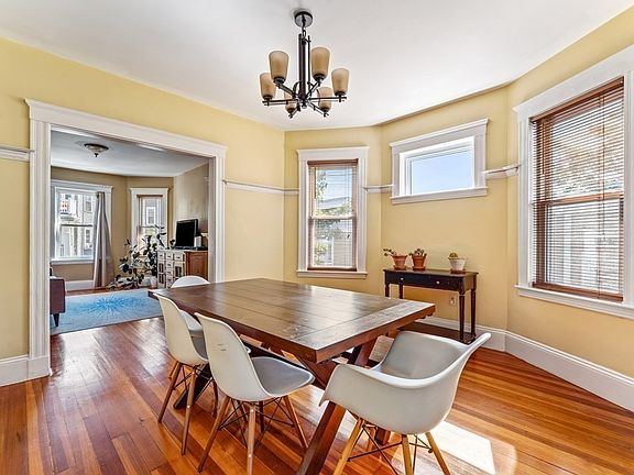 Jones Hill top-floor two-bedroom condo with roof rights and an optional third bedroom. Past the sunny front porch and entry hall, the living room welcomes you with tall ceilings, bow windows and a decorative mantel. The sizable dining room also features bow windows and a closet. The eat-in kitchen offers a pantry and space for an island. Off the kitchen, a full-width private rear deck overlooks the city. The corner primary bedroom offers two closets, while the second bedroom offers a walk-in. Need an additional bedroom? This classic layout provides flexibility: the living room, with two different doorways, can serve as a large third bedroom. Enjoy central air and, in the basement, exclusive laundry and storage. Blocks to the commuter rail at Uphams Corner; about half mile to the Red Line at Savin Hill. Around the corner, meet friends at Comfort Kitchen restaurant and cafe, ranked Boston’s Best New Restaurant of 2023.