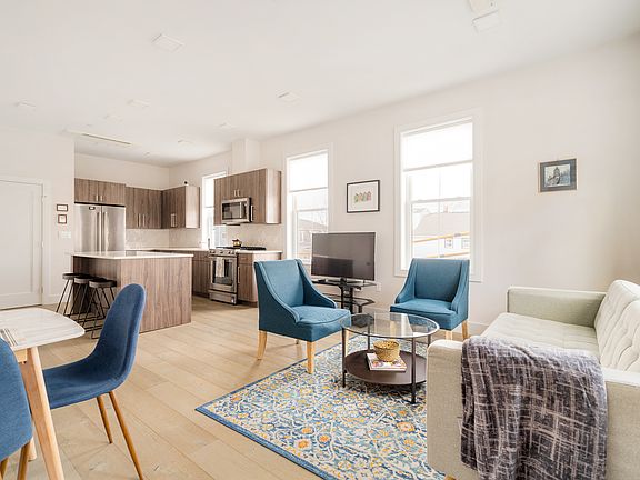 Welcome home to this stunning new top-floor corner penthouse in the heart of Somerville. This luxury smart residence offers over 1,100 sq ft, designed for ultimate efficiency featuring Wi-Fi-controlled lighting, keyless entry, A/C & heat control, and a smart washer and dryer. Step inside to an expansive chef's kitchen with premium stone countertops, a large island, high-end appliances, and custom cabinetry. The sun-drenched, open-concept living and dining area boasts soaring ceilings, elegant finishes, and seamless flow, perfect for relaxed living and entertaining. A chic half-bath completes the main level. Upstairs, find a your home office, two spacious bedrooms, and a spa-inspired bathroom with a double-floating vanity and opulent glass-enclosed shower. The primary suite impresses with a large walk-in closet. Prime location near Sullivan Square (orange line) & Gilman Square (green line) T stops, Assembly Row, Broadway Corridor, and Somerville's best dining & shopping. 6 or 12 month lease available. Can be leased fully furnished. First month, security deposit, and broker fee due at signing.
