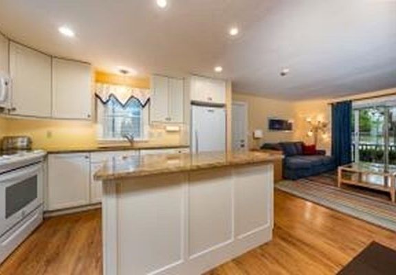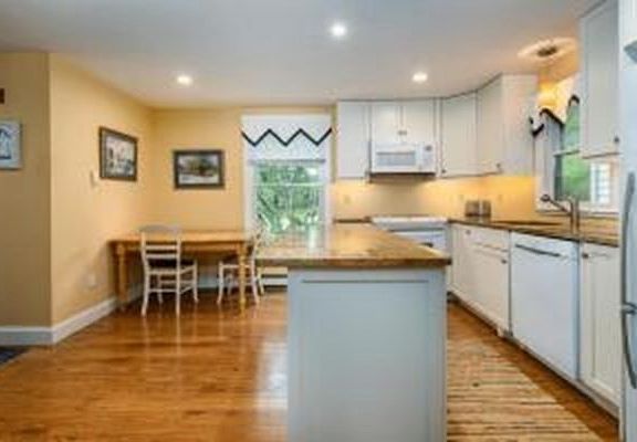 Location! Location! Available December 1st, 2024. Walking distance to Mashpee Commons. Newly updated & Renovated 2 bdrm, 1 bath, 810 sqft. First Floor End Unit. Upgrades include: newer windows, sliders, kitchen appliances, granite countertops, island, cabinets, flooring, recessed lighting, bathroom vanity & painted throughout. Also, newer Bosch stackable washer/dryer. Stay home & enjoy the extra-large deck overlooking pretty green space & just steps to beautiful in-ground pool. Basement is a good size, roughly 500 sqft, with interior access. Great for storing bikes & beach gear. No pets and non-smoking. Apartment is unfurnished, furniture in pictures is not included. Water is included Electric and cable on own Non-smoking 1st and last month rent up front with 1 year lease $2450 damage deposit