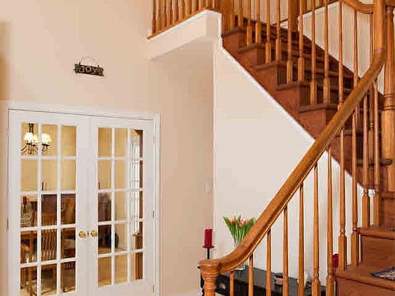 Lovely appointed front porch Colonial tucked privately on almost 16 acres of wooded property. Fabulous two story foyer is flanked by spacious formal dining and living rooms;9'ceilings on main floor; custom cook's kitchen with maple cabinets, corian counters, stainless appliances including warming drawer, wall oven/convection, built in micro/convection, wine cooler, dual drawer dishwasher, gas cooktop; gas fpl; master suite with walk in closet and large bath with whirlpool; huge rear deck with hot tub; shed and workshop with electric & water.