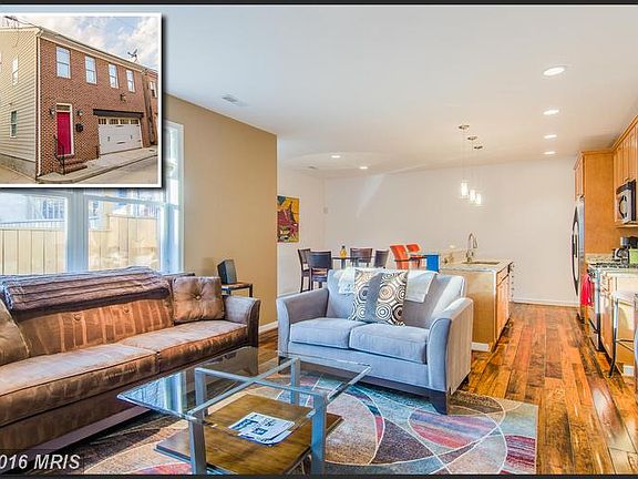 UNIQUELY DESIGNED 30 FT. WIDE ROWHOME WITH OVER 2,000 SQ. FT. OF LIVING SPACE & 2 CAR GARAGE! Reclaimed hw floors throughout, open floor plan, LR w/ gas fireplace, Chef's island kit w/ breakfast bar, ss applncs, & granite cntrs, Master suite w/ spa bath w/ dbl sinks, sep shower & large soaking tub & rooftop terrace! Custom front & rear doors, tons of storage & close to JHH, Fells & Patterson Park