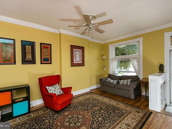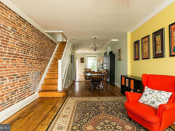 Charming Patterson Park Bow Front! Gleaming wood floors throughout, open bright floor plan, Galley Kitchen with center Island, 1st floor half bath. Second level has 2 generous bedrooms, loft/office space! Rear bedroom has private balcony overlooking yard. Fully finished basement and potential for parking.