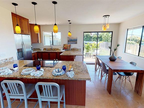 This Kua'aina home sits in a desirable Pukalani neighborhood. Close to local shopping and schools. You can choose the floor plan that fits your needs: 4 bedroom 3 bath home or a 3 bedroom 2 bath with attached studio for added income. Mahogany cabinets throughout, travertine, engineered teak and bamboo wood flooring, rain forest marble, sea foam granite and onyx stone work. The master bathroom has a walk-in river rock shower and one-of-a-kind nightlight/sink. Roof replaced in 2013 and Net PV system with 16 panels added. This gem is ready for you to move right in! Sellers to do 1031 Tax Deferred Exchange.