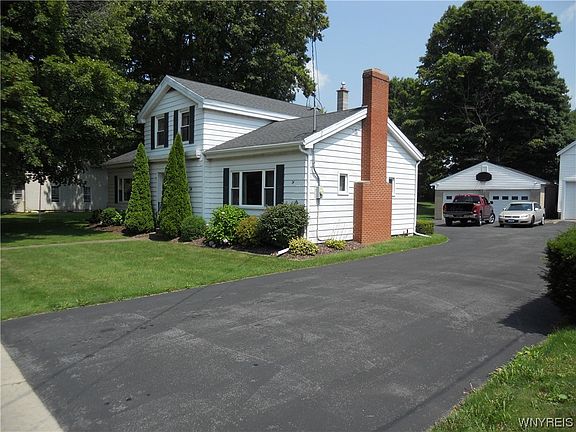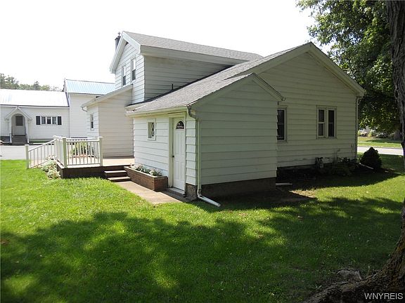 Located in the Village of Elba is this charming 3-bedroom, 1 bath home with detached 2 car garage and work shop area. There is an addition on the back of the garage which could easily fit at least one more car. One bedroom downstairs, 2 bedrooms upstairs. This home features a first-floor laundry as well as a remodeled bathroom with walk in shower, grab handles and fold away seat for safety. A large foyer graces the front entrance with closets on each side of the doorway. To the right of the entryway is a huge living room with a wood burning fireplace that has been converted with a natural gas insert. A formal dining room is kitchen adjacent for family dinners and entertaining or could easily become the living room. The living room could be converted to a HUGE 1st floor bedroom (making the house 4 bedroom) the current 1st floor bedroom would make a large ensuite to the new bedroom. The rear entrance features a deck with Trex decking for easy maintenance. Appliances are INCLUDED! Delayed negotiations until 8/11/23 at Noon. Currently no keys for the front door exist. If located, they will be provided at closing. Centrally located between Rochester and Buffalo for an easy commute.
