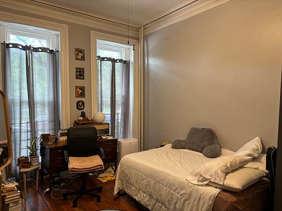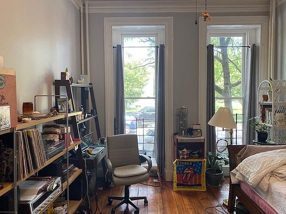 Nice studio with a great view of the park. If you work or go to school at Hopkins the free shuttle is 1/2 block away. The apartment has 2 10' high windows which face the park. The apartment has 12' high ceilings and original hardwood floors which go back to the 1840's. We just added a granite countertop in the kitchen as well as a new in counter sink. You will have access to a washer and dryer. The bathroom has a clawfoot tub and shower. If you would like the apartment can come partial furnished. Great neighbors. Patterson Park is the best park in the city. It is right across the street and has over 160 acres, of ball fields, tennis courts, walking and bicycle paths etc.. During the summer there are free out door concerts, wine tasting etc...The park also has an indoor ice skating rink, and an Olympic size swimming poll. Please go to the https Also the Baltimore Sports and social club has leagues for intramural kickball, volleyball, softball etc. at the park. 1 year lease and 1 month security deposit.