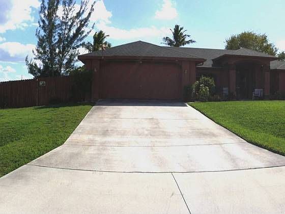 Southern exposure for the perfect sun all year long. This home has central water/sewer service. Wonderful great room, den with french doors for privacy, large breakfast counter, and plenty of dining space off the kitchen overlooking the pool. Lots of sliders open from the great room. So much light and window space to enoy oversize triple lot, fenced yard, tropical landscape every where. New tile, appliances are almost brand new, freshly painted. Sellers are relocating, so all their hard work ...