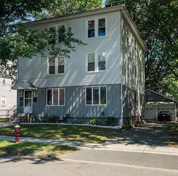 This well maintained 3 family is sooo ready for a new owner! Each apartment has 5 rooms, 2 bedrooms . There is the possibility of 3 bedrooms each as the 2 front room are separated by original French doors , huge kitchens, hard wood floors, laundry connections for each unit , newer windows and great rental history. The mechanicals are in great shape also. Each apartment has its own electric panel (4th panel is owners), sep. heat in all apartment.Most appliances are owned by the Seller.The home has private locked storage area in basement for each apartment and off street parking. There is an over sized 2 car garage with loft area with over sized 8 ft tall doors- great for large truck and even big enough to store your boat!